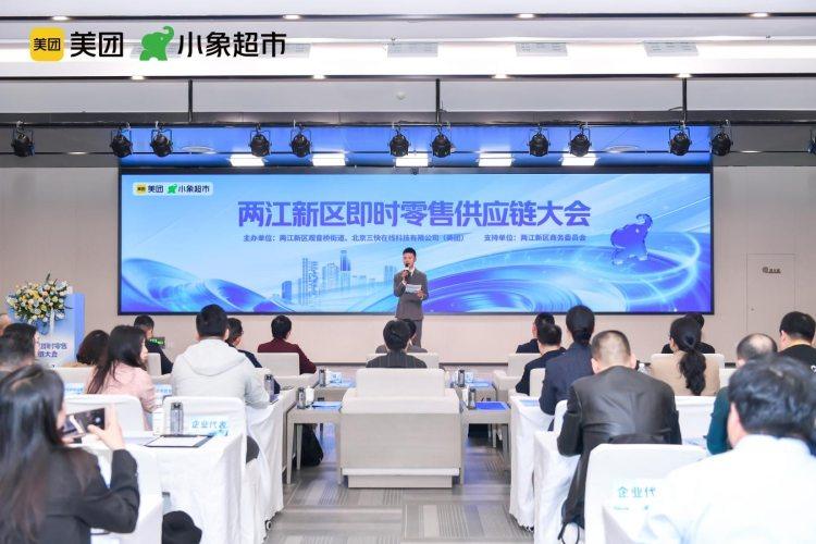 本次大会由两江新区观音桥街道与北京三快在线科技有限公司(美团)联合主办,两江新区商务委员会支持。重庆市经济信息委、市商务委、市农业农村委,两江新区政府及相关部门负责人,国内即时零售行业专家、供应链数字化改造专家、美团小象超市采购负责人,以及来自重庆、四川的优秀供应链企业代表等150余人出席大会。