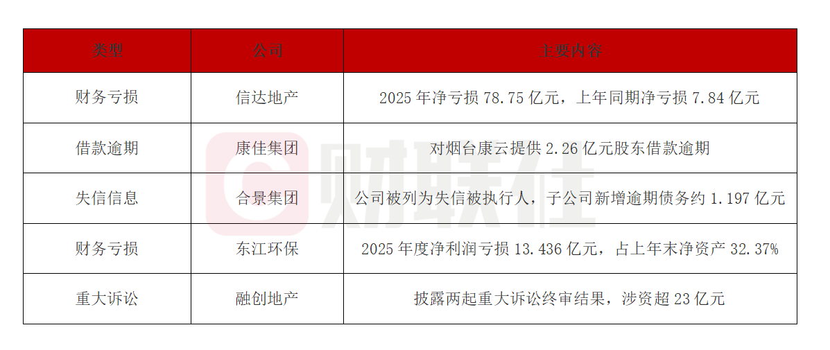 本文汇总了财联社4月1日的重要债市公告,包括信达地产、康佳集团、合景集团、东江环保和融创地产的财务及诉讼信息。