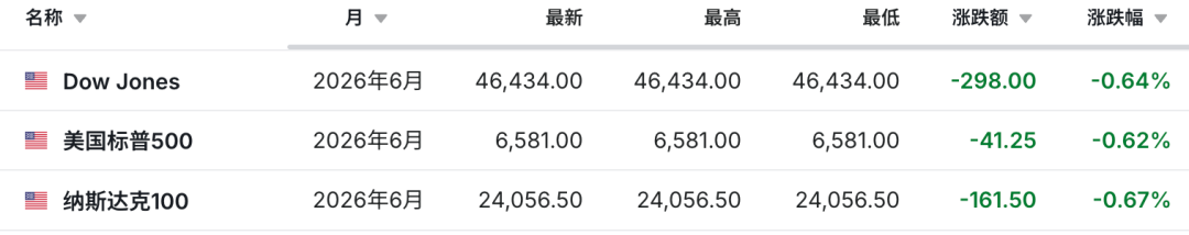 美股主要股指期货亦全线走低。