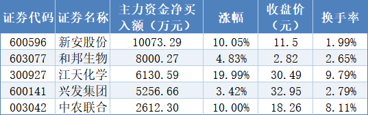 表:4月7日主力资金净买入额超过1000万元的草甘膦概念股