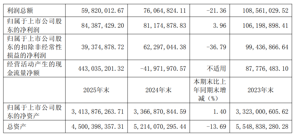 宁波联合2025年年报主要会计数据