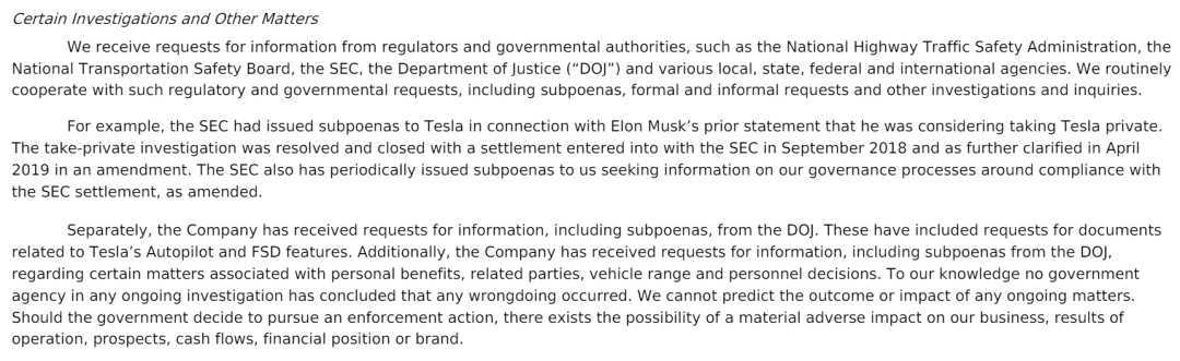 特斯拉当时还透露,除美国司法部外,国家公路交通安全管理局(NHTSA)、证券交易委员会以及众多联邦、州及地方机构,乃至海外机构均在向其索要相关数据。