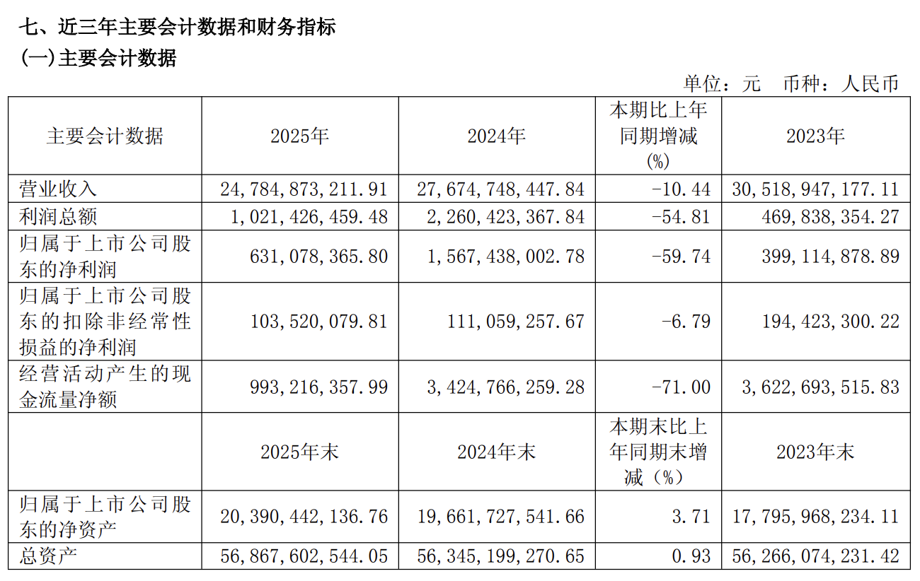 数据显示,百联股份2025年实现营业收入247.85亿元,同比下降10.44%;归属于上市公司股东的净利润63107.84万元,同比减少59.74%;扣除非经常性损益后的净利润10352.01万元,同比减少6.79%;经营活动产生的现金流量净额9.93亿元,同比减少71.00%。