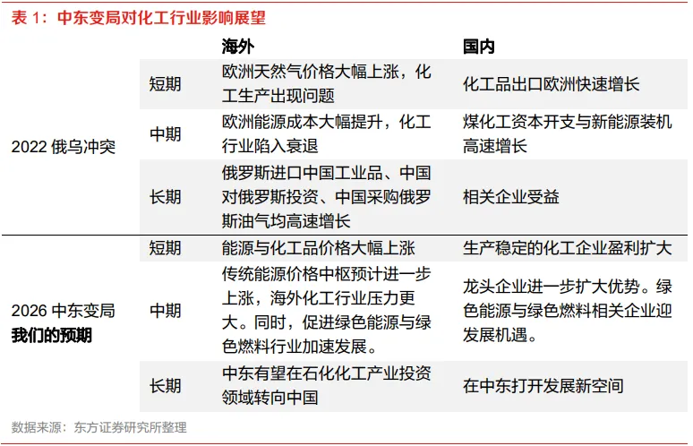 短期,我们认为化工行情主要以供给收缩加紧导致的产品价格超预期上涨为驱动。中期,我们认为行情来自于国内外化工竞争力进一步分化,以及新能源产业趋势的拉动。长期,我们认为中国企业可能在中东获得非常大的发展机遇。