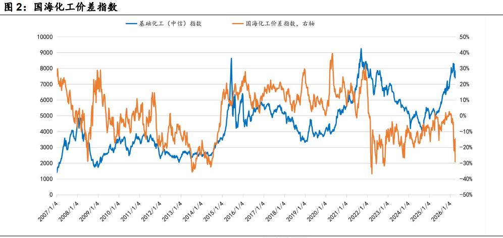 基础化工盈利综合而言处于底部区域,ROA低迷持续三年之久。2023-2024年欧洲关闭超1100万吨产能,2025年海外众多化工厂宣布关停。国内虽有新增供给释放,但整体节奏大幅放缓。2026年,反内卷+海外产能退出,化工有望再次启航。