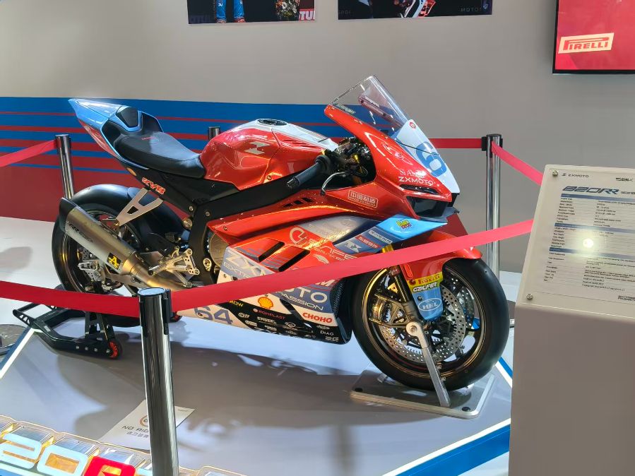 张雪机车展位的夺冠赛车车型,郭莎摄