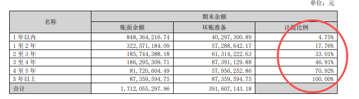 梳理近年来坚朗五金的财报发现,公司在2-3年的账龄段采用了20%的预期信用损失率。这要明显低于行业在该账龄段普遍采用的30%-50%计提比例。