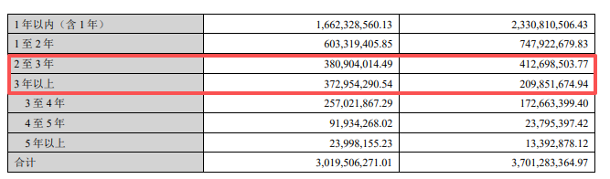2025年,坚朗五金的应收账款中,2-3年账龄段的期初账面余额为4.13亿元,期末账面余额为3.81亿元。