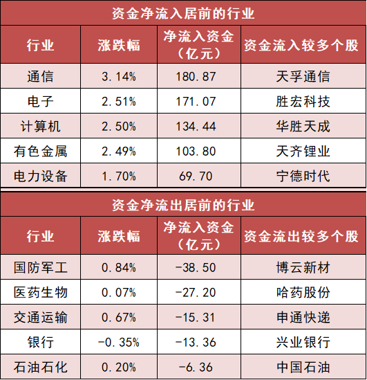 3.通信等行业实现净流入