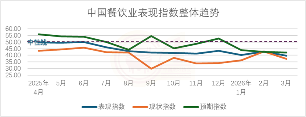 数据印证了这一判断。3月份餐饮业现状指数仅为37.36,环比下降5.57;客流量指数降幅最大,环比下降7.70,节后消费需求回落叠加补贴竞争对到店频次的分流效应,成为经营压力加大的主要原因。