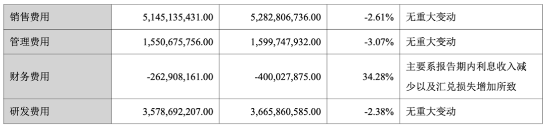 更值得关注的是,公司净利润30.28%的跌幅,远高于9.38%的营收降幅,背后是费用端的刚性压力难以缓解。即便营收出现下滑,营业成本、销售、管理及研发等核心开支并未同步大幅缩减,尤其是35.79亿元的研发投入依旧保持着较高规模,在营收收缩的情况下,各项费用占比被动提升,直接挤压了利润。叠加汇率波动带来的汇兑损失,多重因素共同作用,最终形成了利润端降幅显著高于营收端的局面。