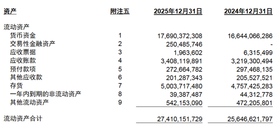 财务结构的稳健,成为当前少数能提供确定性支撑的亮点。截至2025年末,公司持有现金177亿元,占总资产比例达29.8%,资产负债率仅为27.4%。