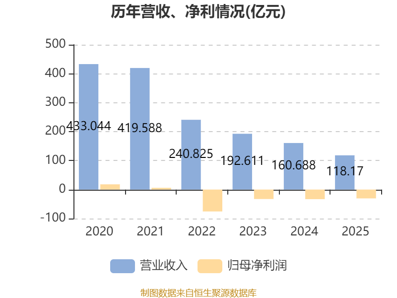 中证智能财讯建业地产(00832)4月21日披露2025年度报告。报告期内,公司实现营业收入118.17亿元,同比下降26.46%;归母净利润亏损30.45亿元,上年同期亏损33.08亿元;经营活动产生的现金流量净额为14.23亿元,上年同期为-22.