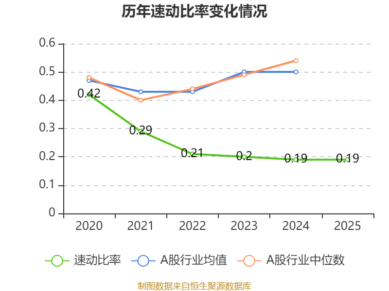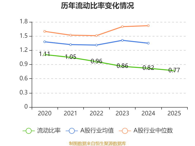 2025年,公司流动比率为0.77,速动比率为0.19。