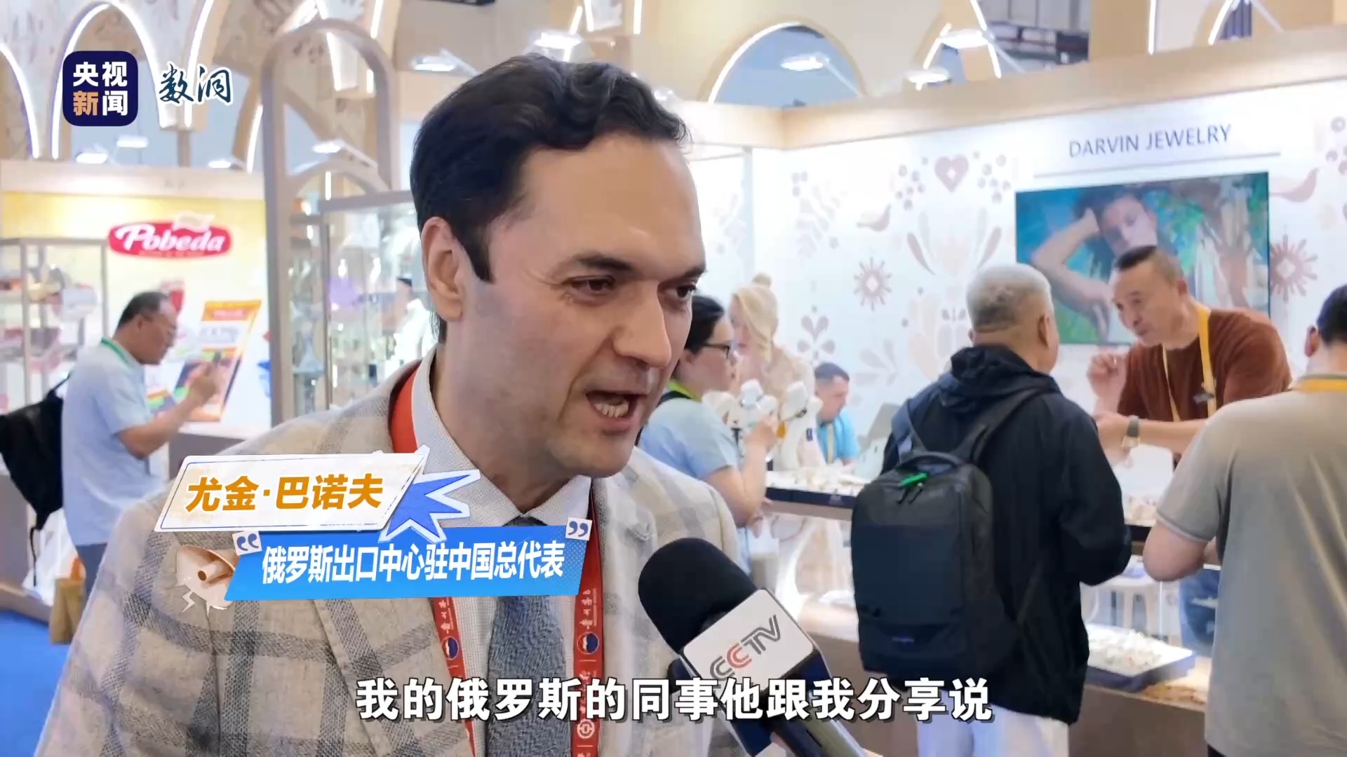 俄罗斯出口中心驻中国总代表尤金·巴诺夫:最没想到的是在这里有这么多人。我的俄罗斯的同事跟我分享说,感觉是一条河,人来得不停。