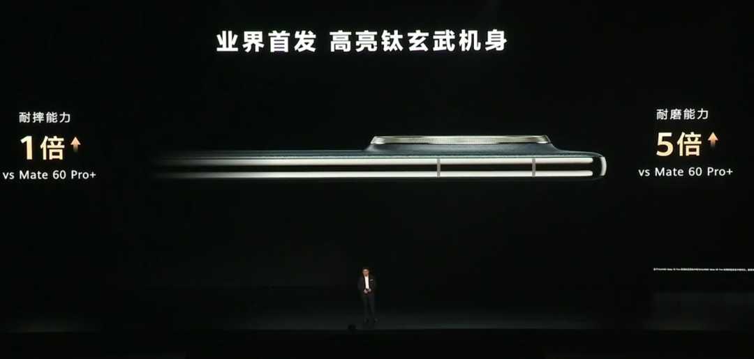 在发布会上,余承东自信地表示,Mate系列始终走在被模仿但从未被超越的道路上,Mate系列一直引领着工艺创新的潮流,唯有不断创新才能引领行业发展,抄袭注定没有未来。Mate70系列在机身可靠性设计上取得了新的突破,其中Mate 70 Pro+首发高亮钛中框,耐摔能力提升1倍,耐磨能力提升5倍;正面采用第二代昆仑玻璃,整机耐摔能力提升20倍;机身背面则选用超耐用锦纤材质,抗冲击能力提升5倍。三者共同构成全新高亮钛玄武架构,不仅外观高亮夺目,而且整机全面可靠。