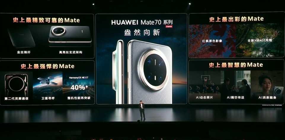 余承东高度评价Mate 70系列,称其为史上最精致可靠、最强悍、最出彩、最智慧的Mate。
