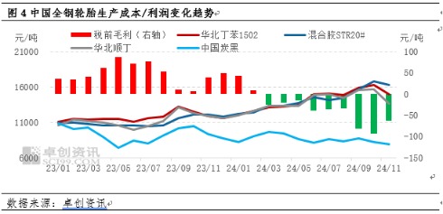 从需求端来看,高成本压力使得工厂采购原料的积极性有限。主要下游领域轮胎企业方面,随着天气转冷,部分地区户外工程和货运市场的运行放缓,消费者主观出行意愿减弱,终端市场对轮胎的需求明显减弱。轮胎替换难以实现增量表现。在出口方面,年末新订单有所放缓,缺乏新的增长预期,这将限制轮胎企业的开工。因此,预计12月份下游需求表现一般。