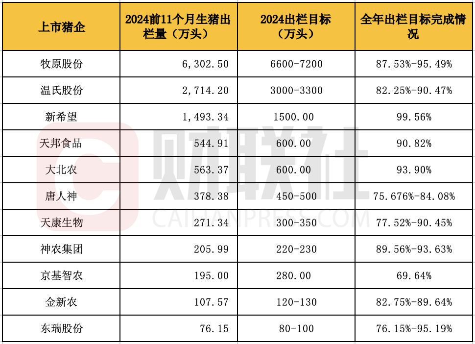 临近年末,上市猪企正加速冲刺年度出栏目标。多家猪企近日发布了11月生猪销售月报,据统计,超过70%的上市猪企出栏目标完成进度已超过90%。