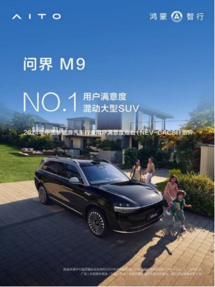 除了在产品层面不断突破外,问界还始终将“全心全意为用户服务”作为企业发展的核心理念。通过提供全场景、高满意度和优质的汽车全生命周期服务体验,问界赢得了广大用户的广泛赞誉。根据2024年中国新能源汽车行业用户满意度指数(NEV-CACSI)测评结果显示,问界M9荣获混动大型SUV用户满意度第一名,问界M7则获得混动中大型SUV用户满意度第一名,而问界M5也荣获纯电动中型SUV感知质量第一名。