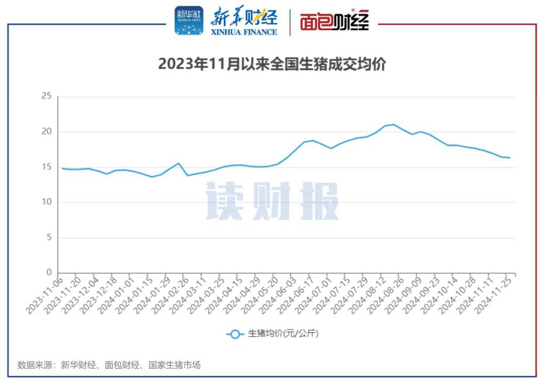 此外,根据国家生猪市场披露的数据,2024年以来,全国生猪成交均价波动较大,最高价达到21元/公斤,最低价则仅为13.6元/公斤。不过,在2024年11月,生猪成交均价依然高于去年同期水平。