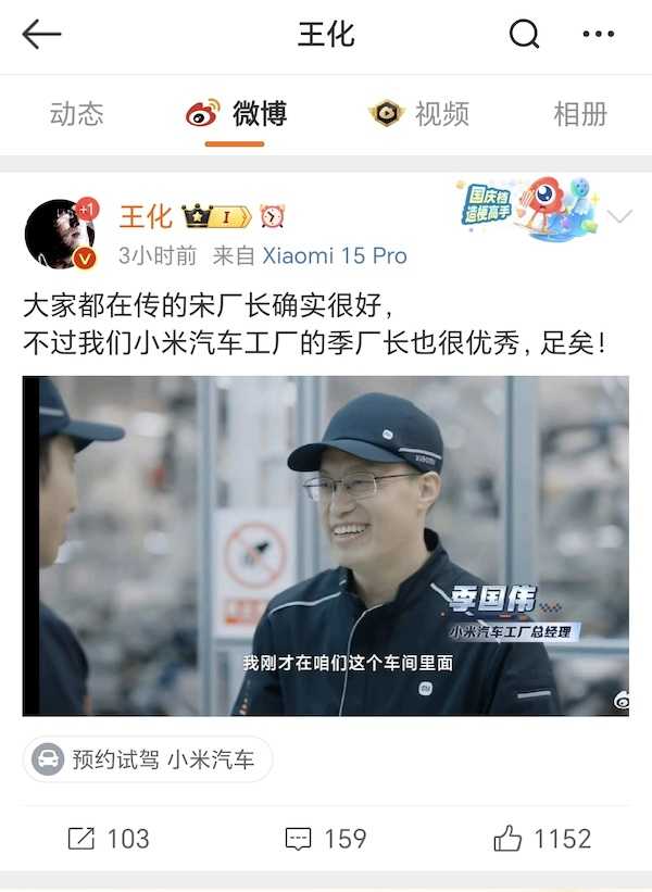 12月19日,小米公关部总经理王化在微博上称赞了自家汽车工厂的季厂长(季国伟),并回应了市场关于特斯拉上海超级工厂生产制造副总裁宋钢将加入小米汽车的传闻。王化表示,虽然宋钢备受赞誉,但小米汽车的季厂长同样优秀。