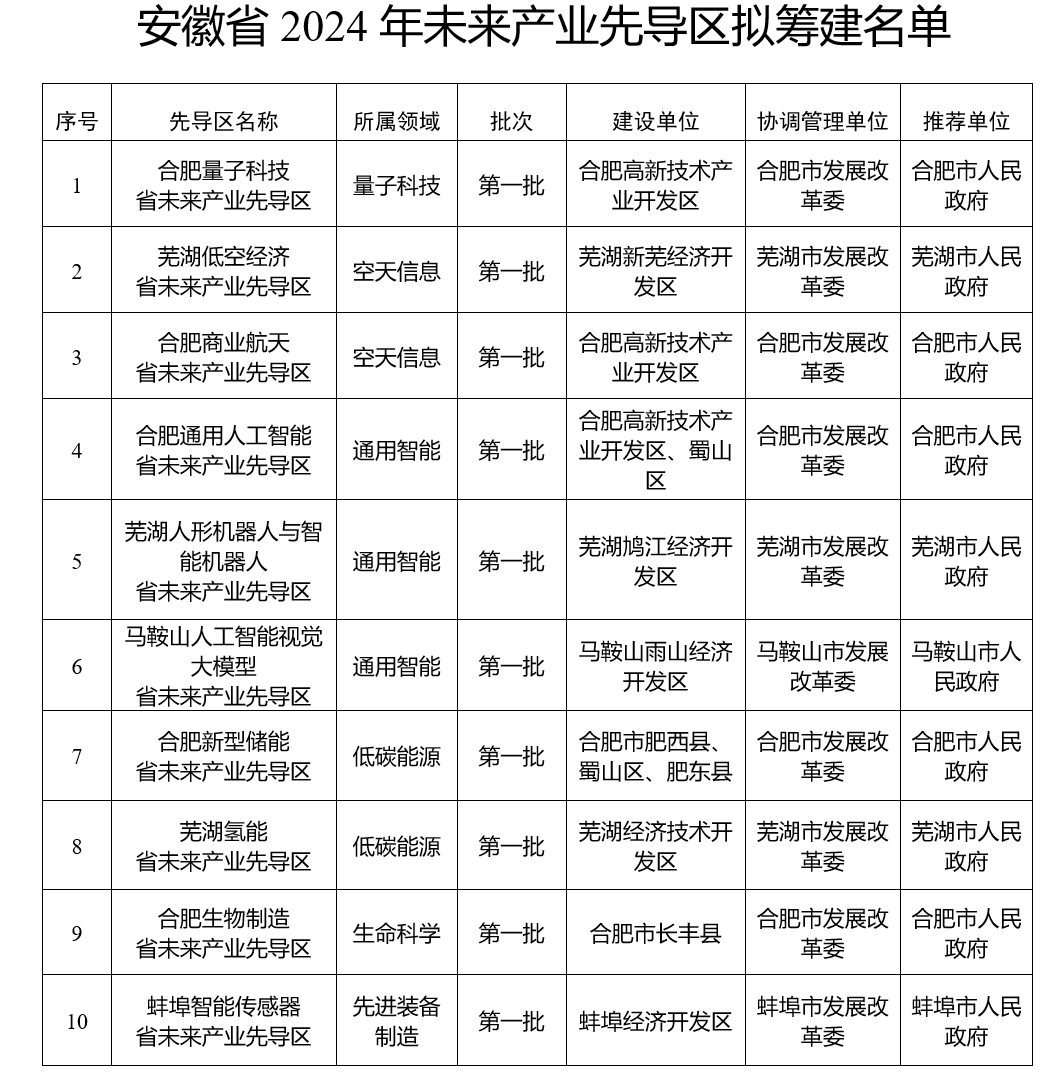 量子、深空、人工智能、新型储能、生物制造——这些前沿科技领域正成为安徽省合肥市未来产业发展的新引擎。今年9月,安徽省发展改革委公布的2024年省级未来产业先导区拟筹建名单中,合肥共有5个省级未来产业先导区入选。