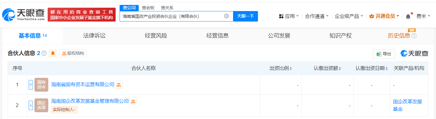 海南省国改产业投资合伙企业(有限合伙)近日成立,由海南国企改革发展基金管理有限公司担任执行事务合伙人,注册资本10亿元人民币,涵盖股权投资、投资管理、资产管理等活动。