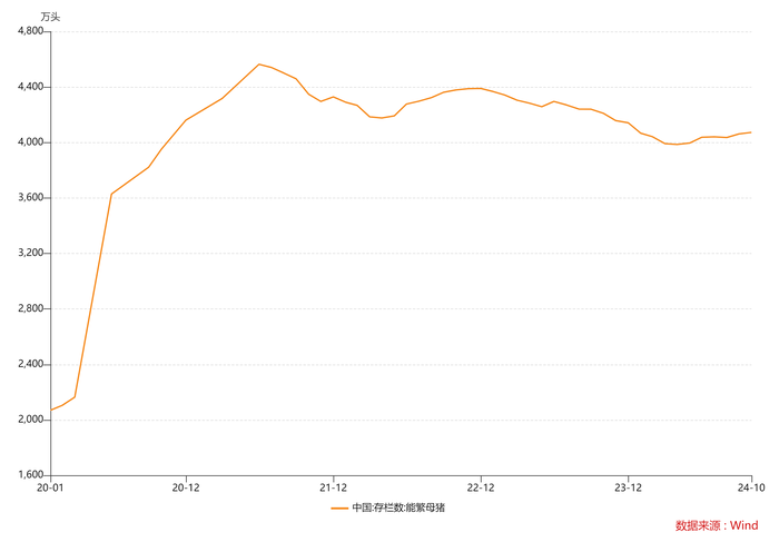 两家头部猪企的扩张还在继续,成为全国生猪产能增加的主力军。在规模化背景下,能繁母猪长期保持高位,也将一定程度上拉长猪价在周期底部的时间。同时,上市猪企股权融资完成规模不断下降,行业资金压力持续处于历史高位。