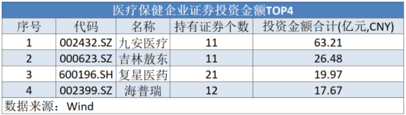 《华夏时报》记者梳理发现,截至12月25日,今年共有74家上市医疗保健公司涉足证券投资,总投资近190亿元。其中,九安医疗、吉林敖东、复星医药、海普瑞等企业投资规模超亿元,但多数处于浮亏状态。例如,九安医疗证券投资累计浮亏2.69亿元,吉林敖东累计浮亏4亿元,复星医药浮亏2.6亿元。