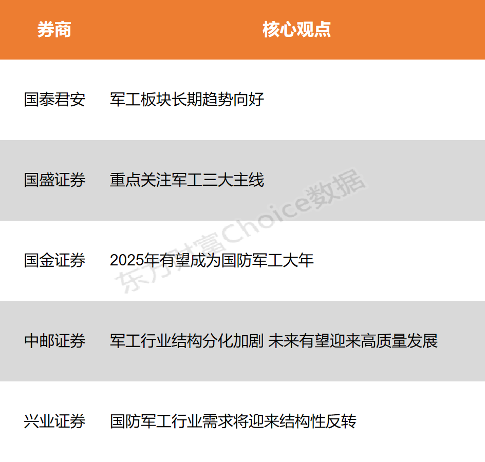 国金证券:指出2025年国防军工行业景气度上行具备高确定性,有望成为国防军工大年。