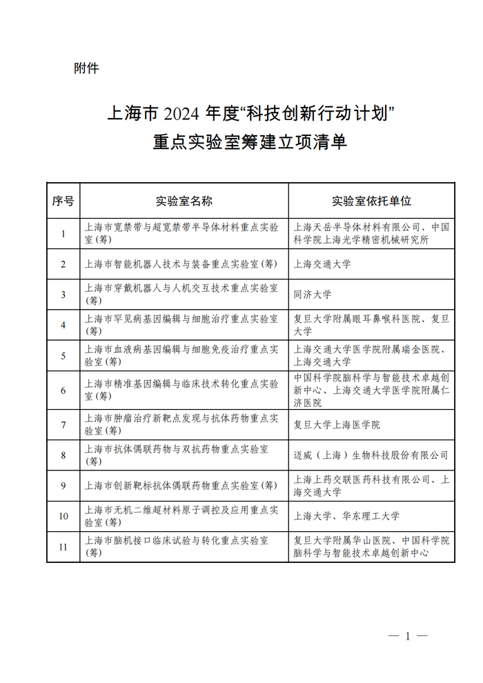 上海启动2024年度“科技创新行动计划”11家重点实验室筹建立项
