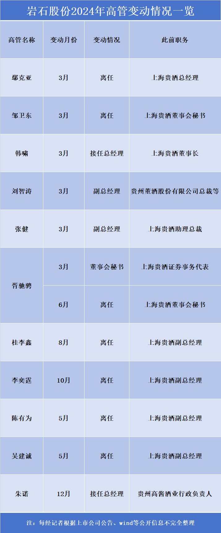 2024年,中国白酒行业面临调整转型的关键时刻,无论是行业龙头还是地方品牌,都在寻求转型和突破,管理团队的调整成为其中的重要一环。部分酒企因经营问题导致高层“大换血”,如兰州黄河、岩石股份(上海贵酒)、中信尼雅等。