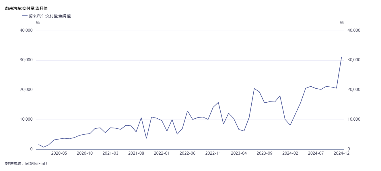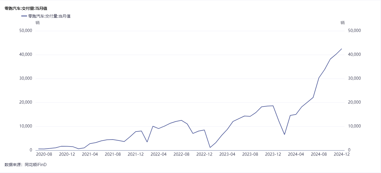 具体来看,理想汽车在2024年12月交付新车58513辆,同比增长16.2%,全年共交付500508辆。小鹏汽车同样表现出色,单月交付新车36695台,同比增长82%,环比增长19%。蔚来公司单月交付新车31138台,突破3万台大关,创下历史新高,环比增长51.3%,同比增长72.9%。零跑汽车则连续两个月交付突破4万台,单月交付42517台,同比增长128%。