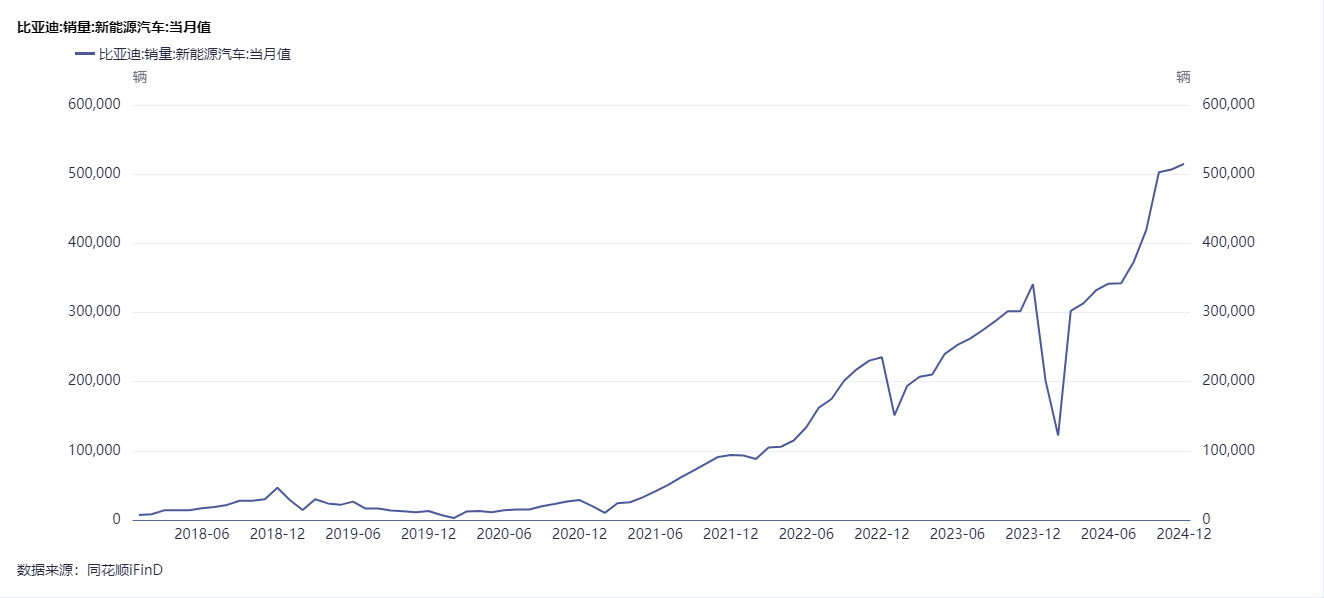 此外,比亚迪也公布了其12月的销量数据,新能源汽车销量达到51.48万辆,全年累计销量427.21万辆,同比增长41.26%。