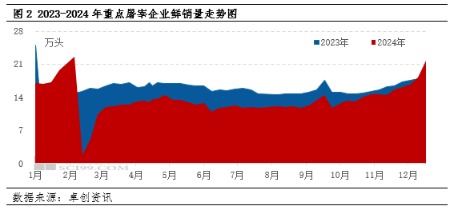 为满足市场需求、扩大盈利,部分屠宰企业选择增加鲜分割品的占比,导致排类等产品的生产量增加。根据卓创资讯的数据,12月猪肉鲜销量呈震荡上升趋势,重点屠宰企业的鲜销量较月初提升了30.01%。然而,由于肋排并非腌腊、灌肠活动的主要原料,且其需求旺季主要集中在春节前半个月的备货阶段,因此冬至前的家庭采买需求对行情的提振作用有限。