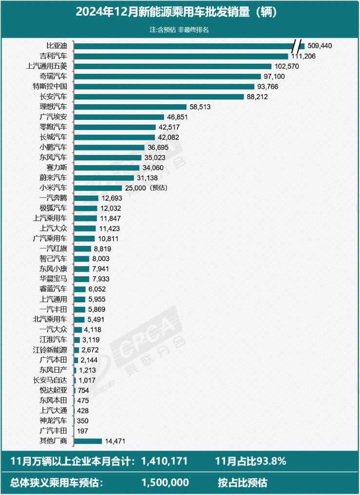 新能源乘用车市场强劲增长,12月批发销量达150万辆