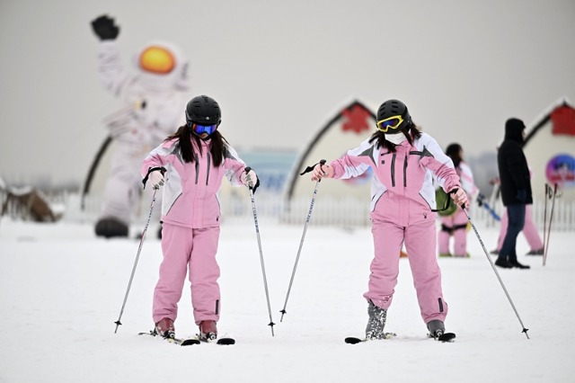 2024年12月22日,宁夏银川市阅海滑雪场游客络绎不绝。新华社记者王鹏摄