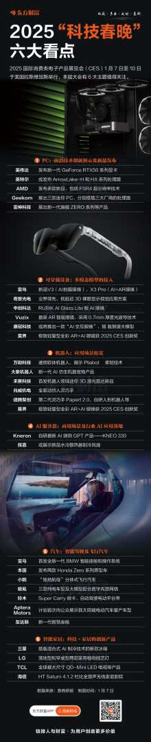 CES 2025科技春晚于美国拉斯维加斯举行,展会以“DIVE IN”为主题,六大看点包括PC、可穿戴设备、机器人、AI服务器、汽车和智能家居领域的创新技术和产品。