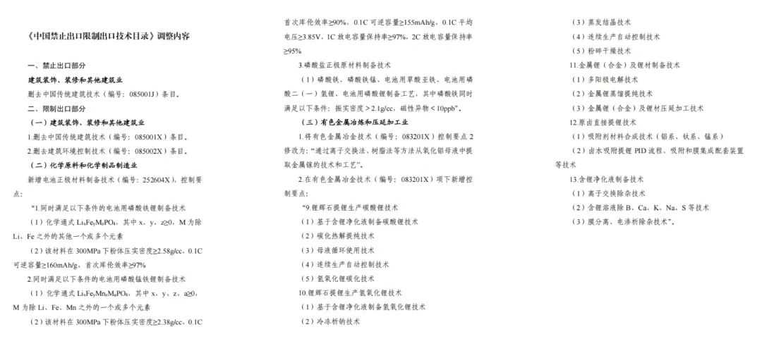 2025年初,国内锂电行业迎来新的出口政策调整。商务部联合科技部等部门,根据《对外贸易法》和《技术进出口管理条例》,对《中国禁止出口限制出口技术目录》进行了修订,公开征求意见。