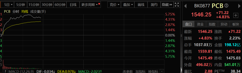 PCB板块今日早盘突然爆发,A股市场中的生益科技、协和电子、宏昌电子、宝鼎科技、一博科技、方正科技、崇达技术等20余只股票一度涨停或涨幅超过10%。