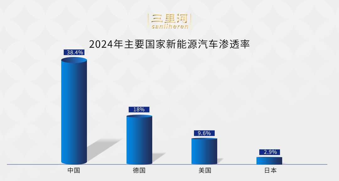 数据显示,2024年中国新能源汽车渗透率已达38.4%,远超德国和美国的18%和9.6%,以及日本的约3%。在全球汽车产业格局发生深刻变革的背景下,中国新能源汽车品牌如比亚迪、理想、蔚来、小鹏、小米等,正越来越多地成为国内外消费者的首选。