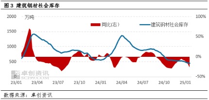 此外,本周建筑钢材社会库存总量为446.43万吨,环比下降1.32%,但降幅收窄。其中,螺纹钢社会库存为352.6万吨,线材库存为93.83万吨。与去年同期相比,目前社会库存总量较低。