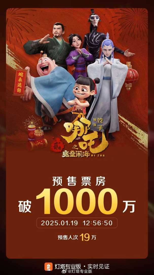 截至1月19日,影片《哪吒之魔童闹海》与《唐探1900》预售总票房均突破1000万,预示着电影市场将迎来新年开门红,提振市场信心。