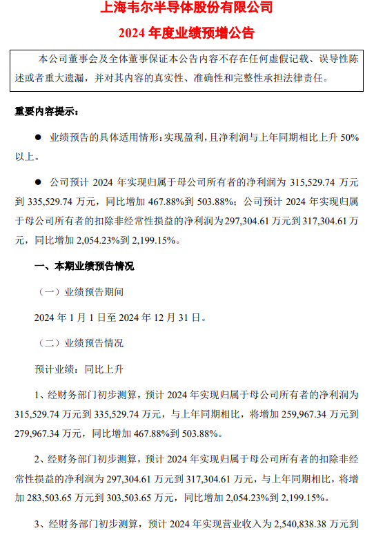 韦尔股份预计2024年净利润大增