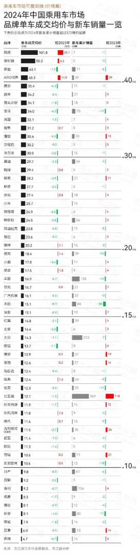 2024中国乘用车市场品牌单车成交均价排行出炉,蔚来超越传统豪华品牌
