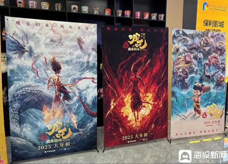 在济南高新区的一家影院大厅内,三幅《哪吒之魔童闹海》的宣传海报格外引人注目,彰显了该片的热度和观众的期待。