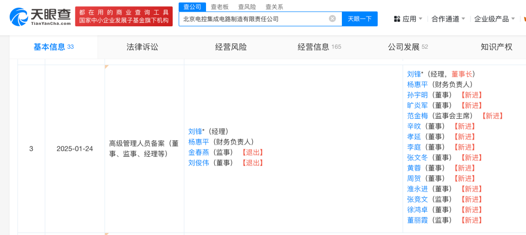 此外,京东方A还透露,自交割日起,北电集成的股东会会议将遵循全体股东按实缴出资比例行使表决权的原则。新一届董事会由11名董事组成,监事会由3名监事组成,关键管理职位如董事长、监事会主席、总经理及财务总监均由燕东科技推荐或提名;副总经理则由董事会决定聘任或解聘。据天眼查显示,1月24日,北电集成已新增多名董事、监事,其中刘锋担任董事长,范金梅担任监事会主席。