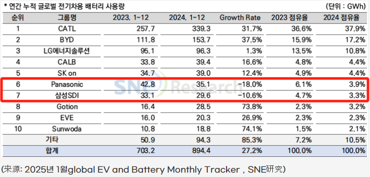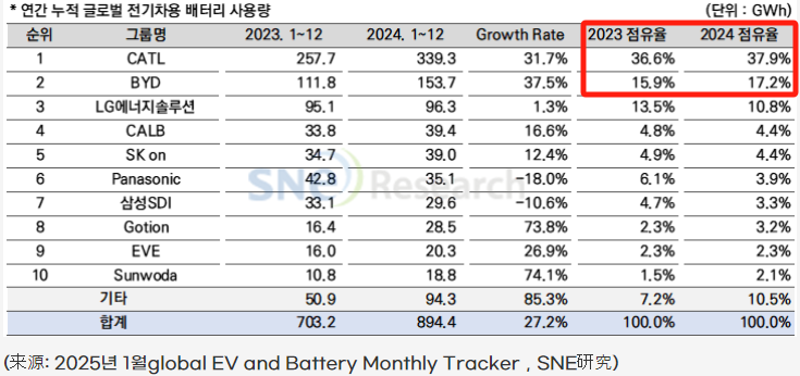 其中,宁德时代2024年全球动力电池使用量达339.3GWh,同比增长31.7%;比亚迪2024年全球动力电池使用量达153.7GWh,同比增长37.5%。