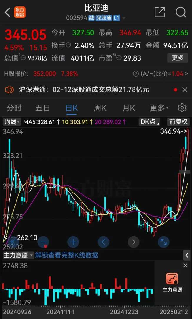 目前,比亚迪正在加快推进新能源汽车的产业化发展。比亚迪2024年的新能源汽车销量达427.21万辆,市场预计其2025年销量目标约为600万辆。